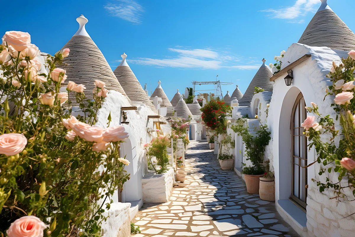 Dzielnica Monti - słynna z charakterystycznych domków trulli o stożkowatych dachach. To jedno z najbardziej fotogenicznych miejsc we Włoszech