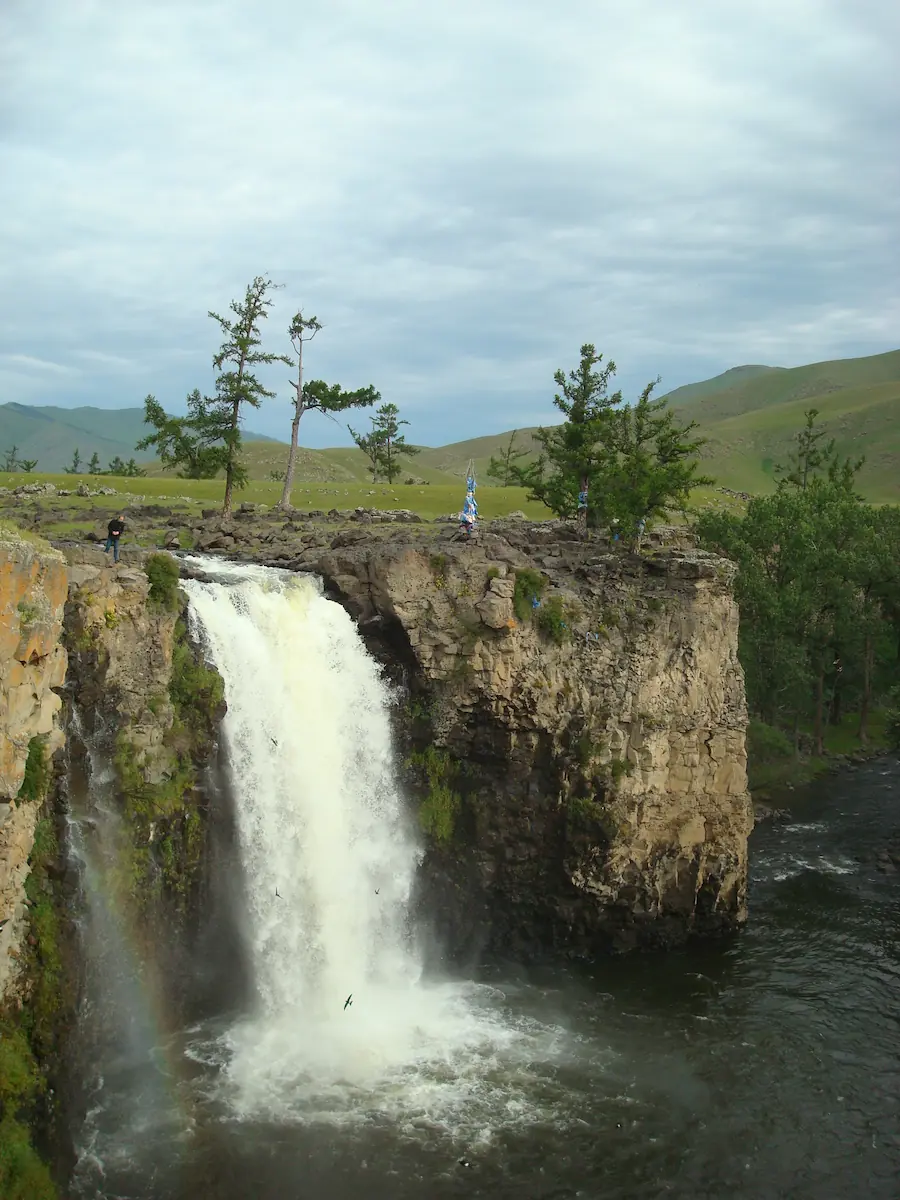 Największy wodospad Mongolii, położony w Dolinie Orkhon wpisanej na listę UNESCO. Woda spada z wysokości 20 metrów, otoczona zielonym stepem i skalnymi klifami. Okolica jest idealna na trekking i jazdę konną. To jedno z tych miejsc, gdzie można zatrzymać się na dłużej, chłonąc spokój i surową naturę Mongolii.