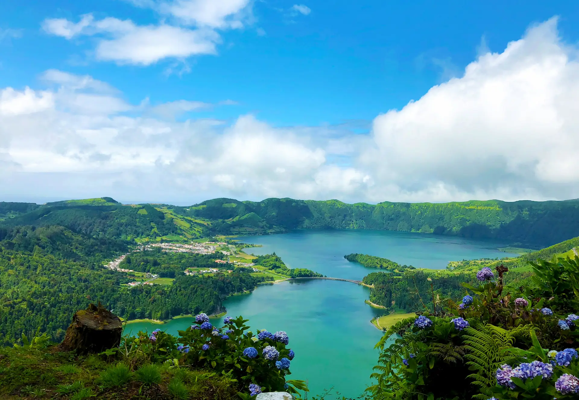 Ogromny krater wulkanu w zachodniej części wyspy São Miguel, wypełniony dwoma jeziorami - Lagoa Azul i Lagoa Verde. Widok z punktów nad krawędzią kaldery pokazuje jedną z najbardziej charakterystycznych panoram Azorów.