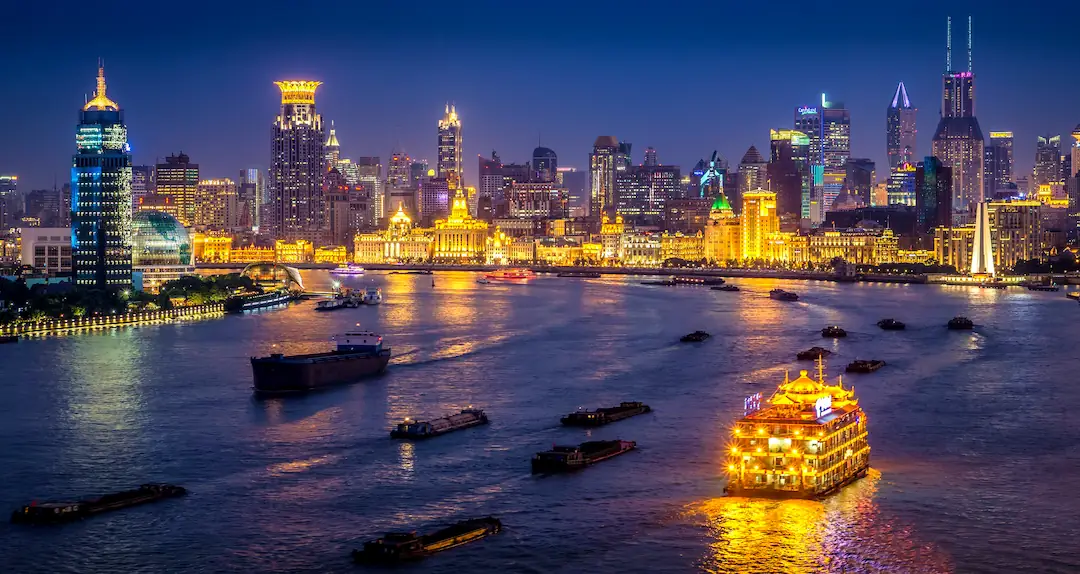 Wieczorny rejs po rzece Huangpu to jeden z najlepszych sposobów zobaczenia Szanghaju z dystansu. Z pokładu widać kolonialne fasady Bundu oraz podświetlone wieżowce Pudongu, które razem tworzą najbardziej charakterystyczną panoramę miasta.