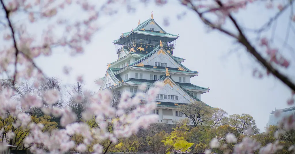 Zamek w Osace: zaczynamy od imponującej twierdzy z XVI wieku – biała sylwetka zamku, otoczona fosą i ogrodami, to duma miasta i symbol dawnej potęgi samurajów.