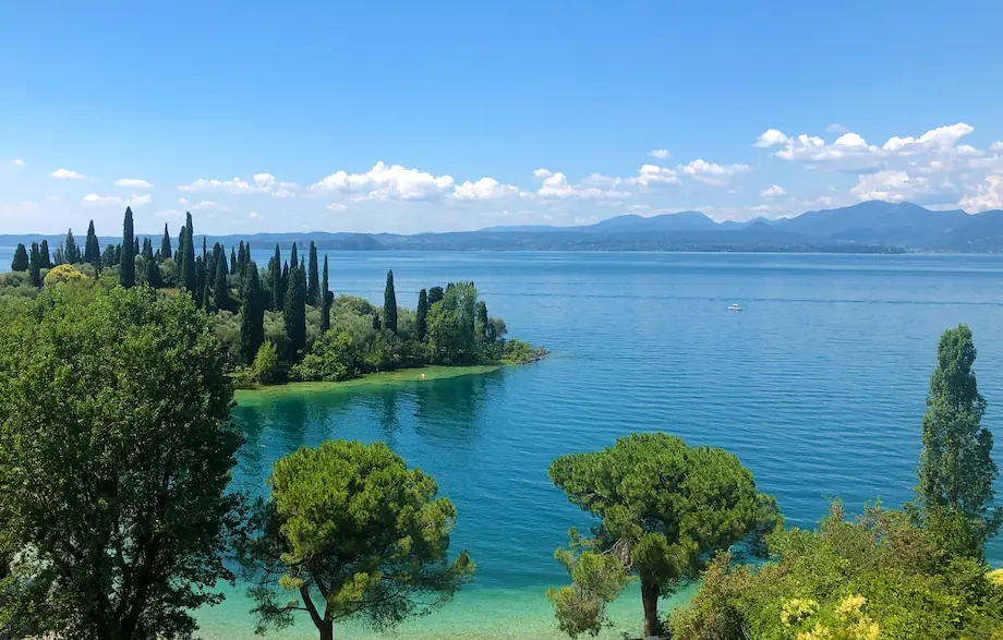 Rejs Garda → Sirmione (ok. 1h 20 min): widokowy rejs po lazurowej tafli jeziora, mijając cyprysowe wzgórza.