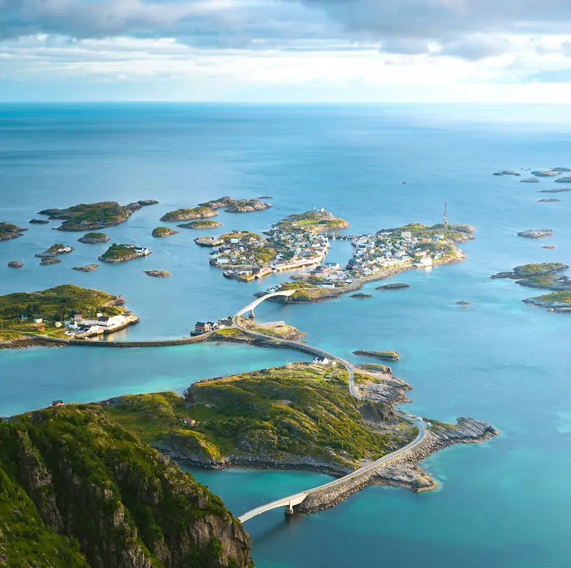 Lofockie trasy widokowe: Przejazdy przez mosty, fiordy i nadmorskie drogi.