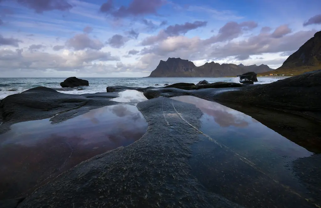 Uttakleiv Beach: Dzikie wybrzeże i surowa natura pokazują jedno z najbardziej charakterystycznych oblicz archipelagu.