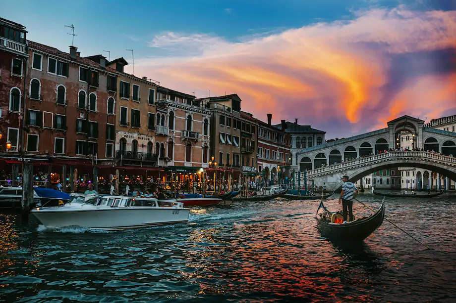 Rejs gondolą: klimatyczna podróż kanałami Wenecji (fakultatywnie).