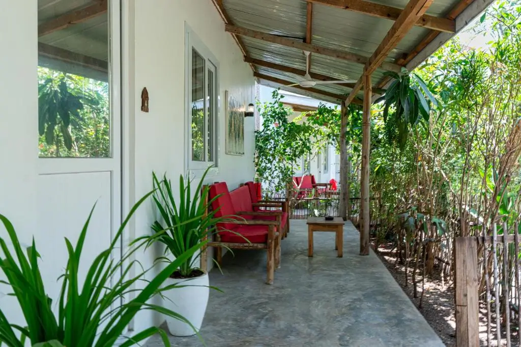 Śniadanie o poranku: spokojny start dnia z widokiem na egzotyczną scenerię i bujną roślinność.
